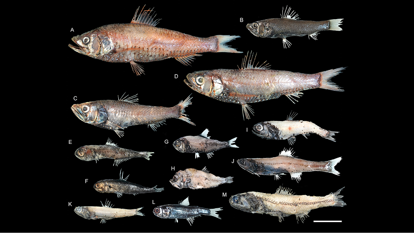 東沙群島位於南中國海北部,為我國設立之海洋保護區。其環礁棲地為許多珊瑚礁魚類的重要育幼場所。同時,外海深海大陸棚海域則盛產各種深海魚類,為歷史上重要的漁場。雖然過去台灣的魚類研究主要集中於珊瑚礁魚類,包括記錄73科共652種,但對於深海魚類的調查較為缺乏。本研究透過分析2021–2025年於東沙海域作業的商業深海拖網漁船所捕獲的混獲魚類樣本,以及檢視既有文獻,更新東沙海域魚類種類組成。結果顯示,魚類名錄增加至 167 科共1087 種,包含新記錄種以及可能尚未描述的新種。本名錄同時收錄各魚種的照片以及矢狀耳石,除了有利後續各領域的研究,亦大幅提升對南中國海魚類相的了解。