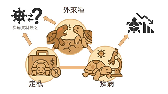 生物多樣性對維持生態穩定至關重要,但疾病已成為全球物種衰退的潛在威脅。台灣特有的食蛇龜(Cuora flavomarginata)與柴棺龜(Mauremys mutica)因棲地破壞、非法走私與外來種入侵而面臨存續危機。外來種可能攜帶病原,對原生種健康與生態平衡造成衝擊,然而目前對這兩種龜類疾病的研究仍相當有限。本研究將針對野生與收容個體進行非侵入性採樣(口腔以及泄殖腔拭子),以qPCR與PCR檢測疱疹病毒、腺病毒及蛙病毒,並透過基因定序分析病原來源與潛在傳播途徑,評估外來種在病原交換中的角色。研究成果將揭示病毒感染率,建立疾病與生物多樣性的關聯,作為健康監測與保育管理的依據,同時強化疾病監測、減少病原傳播風險。此外,本研究將推動科學傳播,提升公眾對龜類保育的認識,促進跨界合作,確保原生物種與生態系的永續發展。